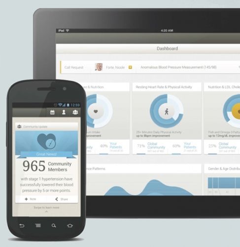 frog's Connected Care Solution was a working prototype of a service available to ease the communication between patients and HCPs. It was focused on patients with high blood pressure, and featured a complete flow: a connected sphygmomanometer, a mobile app for patients to record blood pressure readings and upload them to the cloud, a cloud server, with a REST API, a tablet app for the physician, to check his patient's progress.