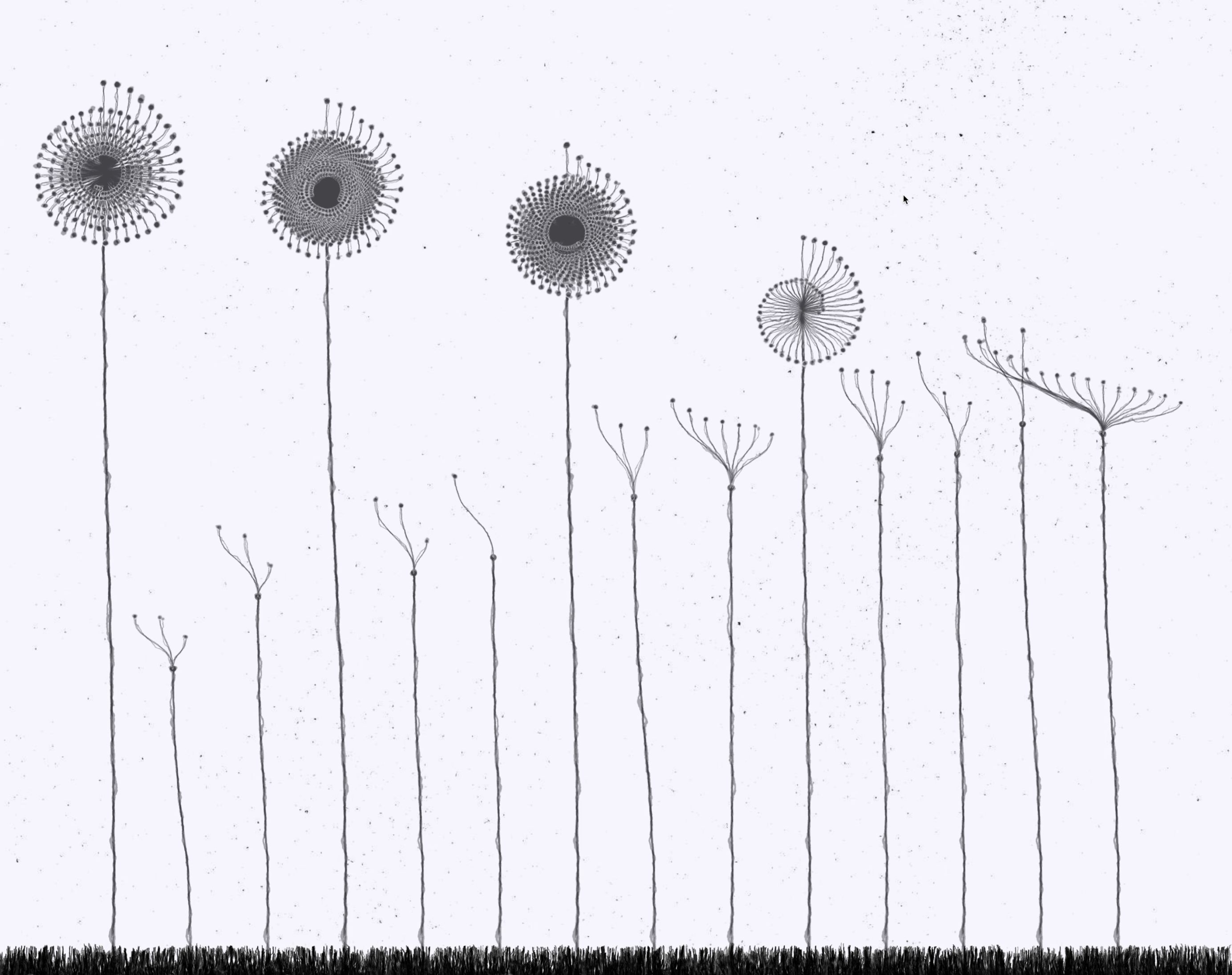 Since this wasn't a customer-facing project but just an experiment, I decided to build a romantic story around it: Jeff is a bot who lives in the cloud and spends his days observing network flow data. He also loves nature, Victorian-era imagery, and drawing. Combining these elements, I decided to represent classes as trees, with their height corresponding to the number of flows, and devices as branches. Each branch's length represents the number of flows for that specific device, while the size of the leaf on top reflects the number of endpoints for that device. Since Jeff loves to draw but, being a bot, has never actually seen a tree, I aimed to give the chart a deliberately clumsy, hand-drawn feel. I also made it dark and gothic to align with the Victorian-era gothic aesthetic.
